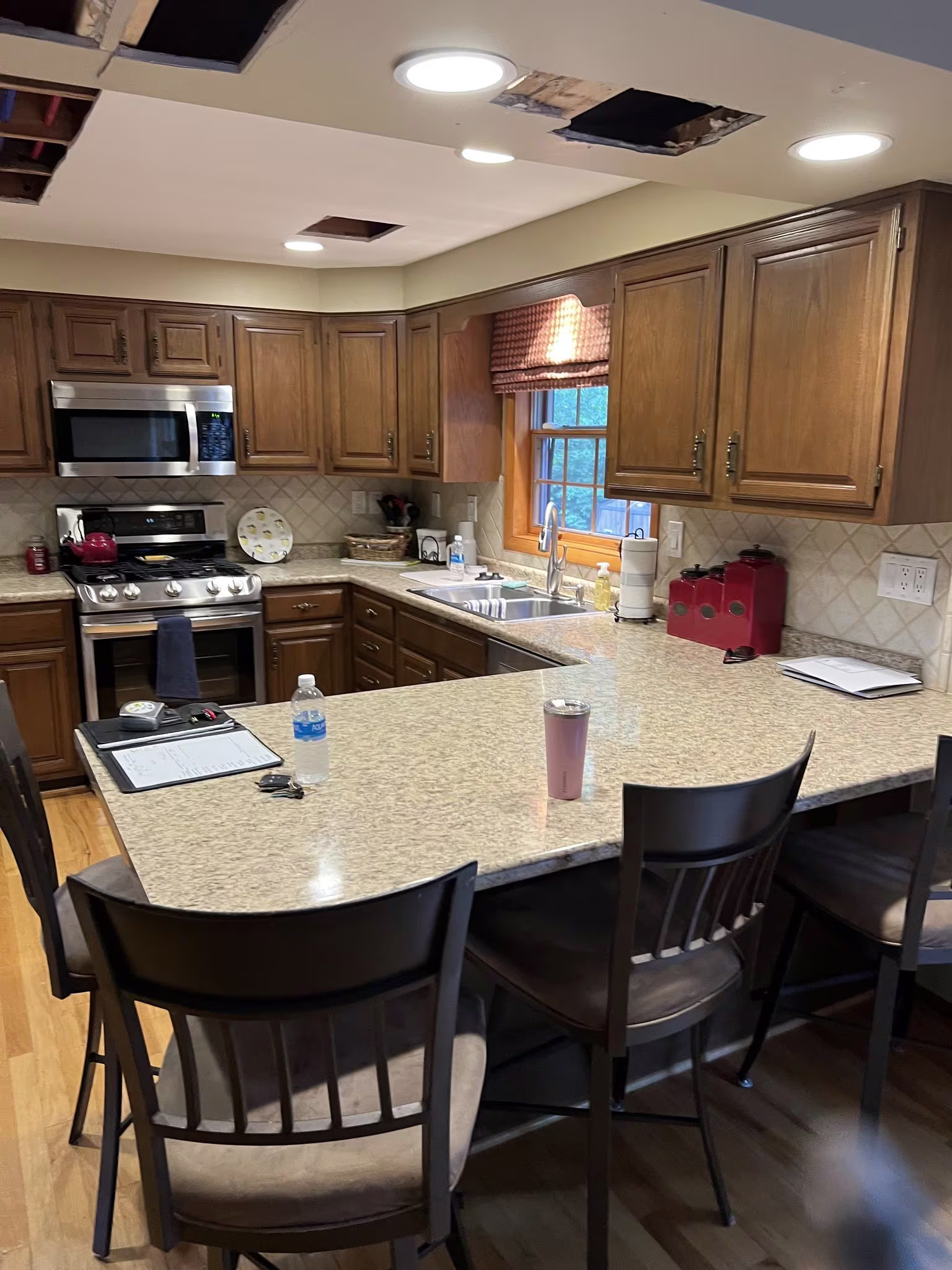 Our client was tired of their dated kitchen and wanted something fresh, bright, and totally modern. If you look at the before pictures, you'll see we had to totally gut the old, heavy cabinetry and that awkward dropped ceiling.